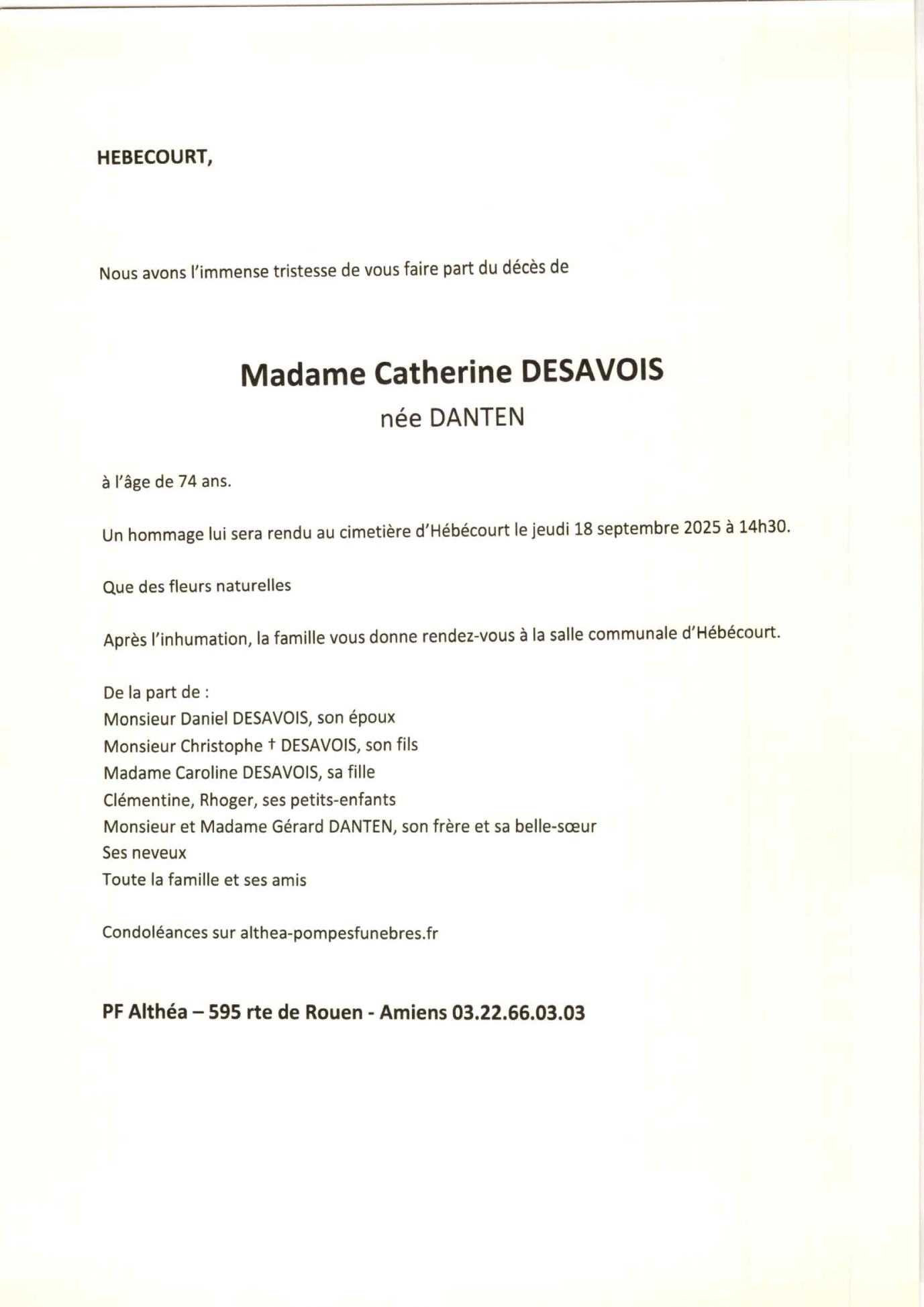 Annonce nécrologique