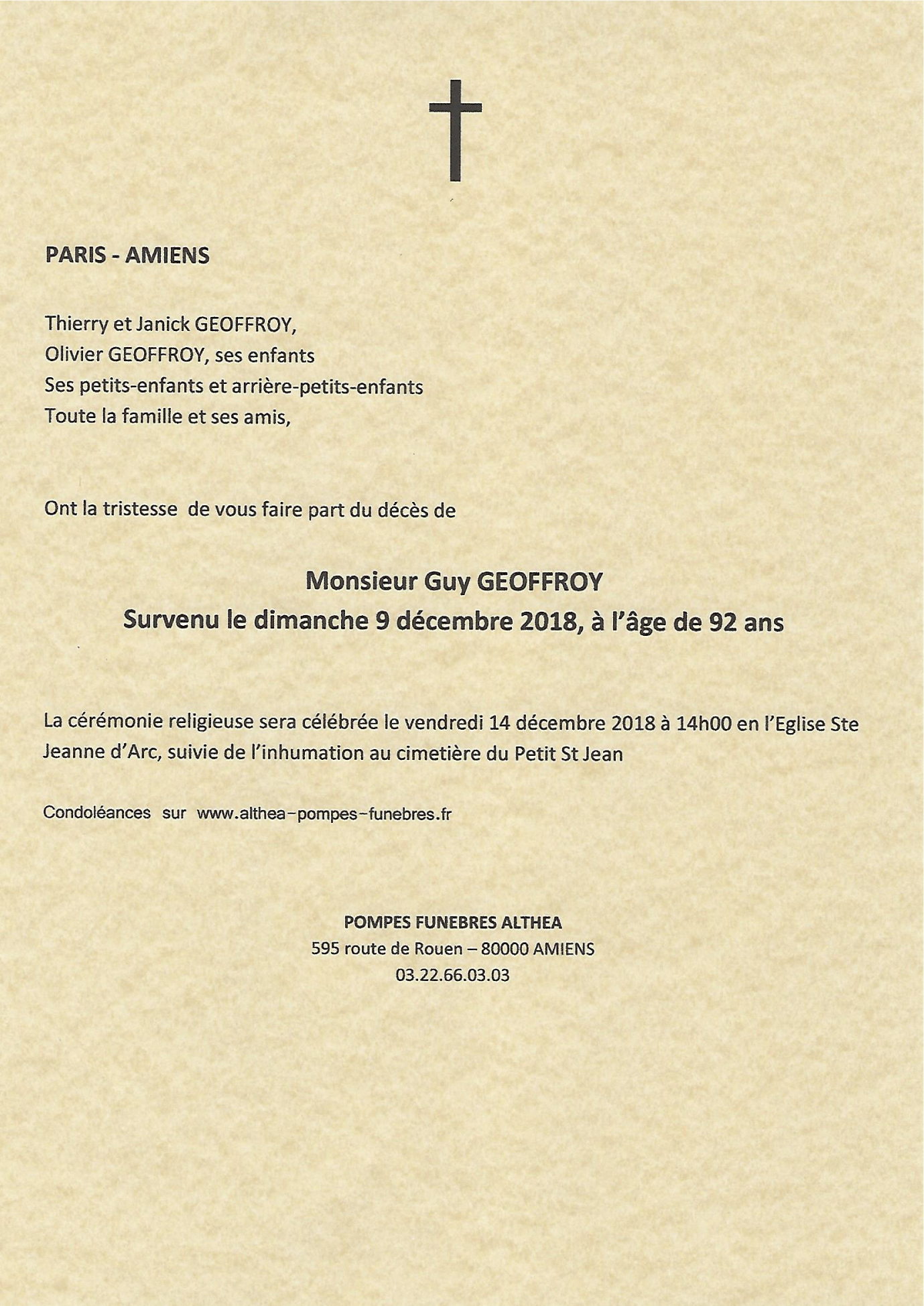 Veuf de Madame Pierrette GEOFFROY - GEST