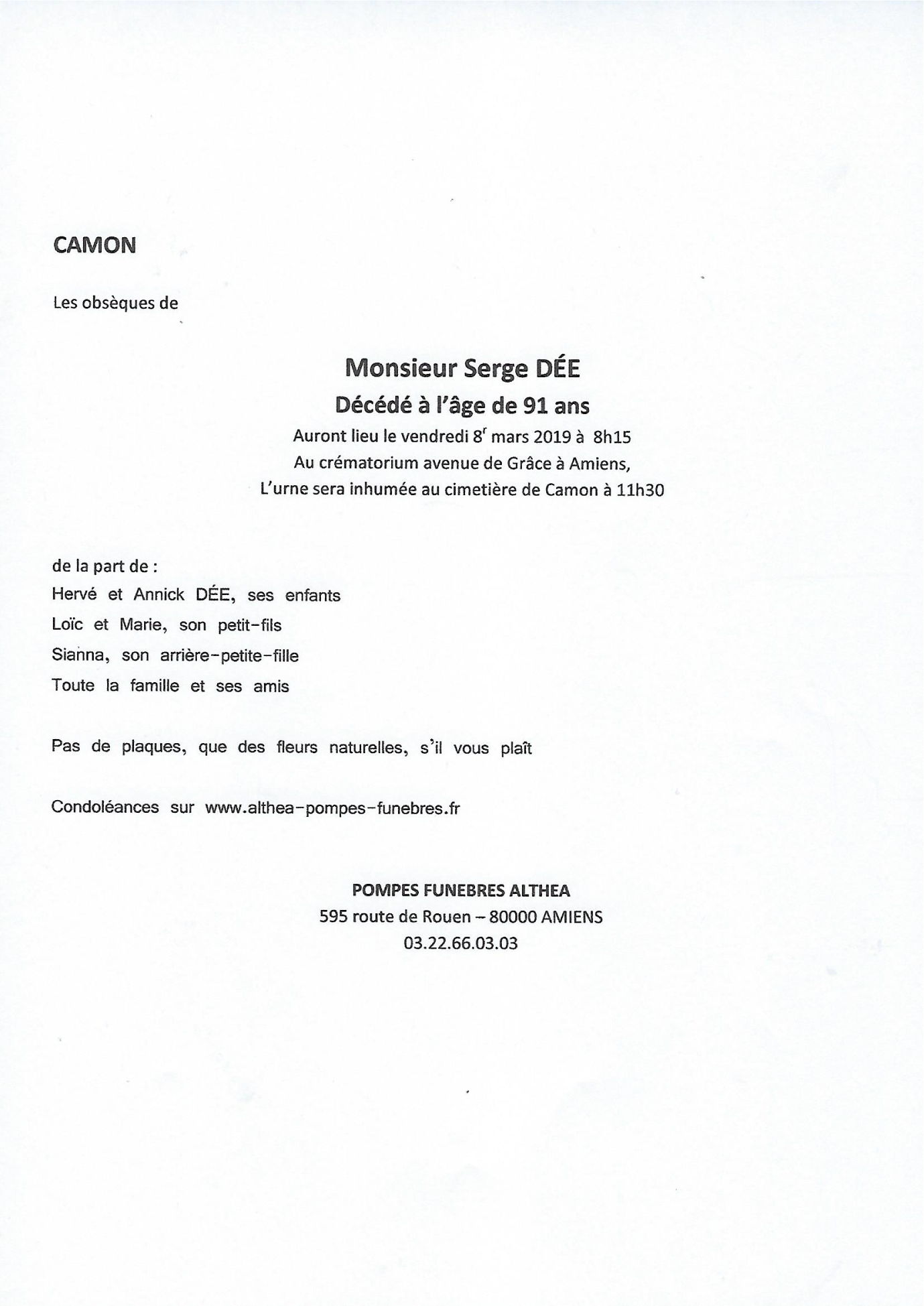 Décédé à Amiens (80000, France) le lundi 4 mars 2019 à l'âge de 91 ans